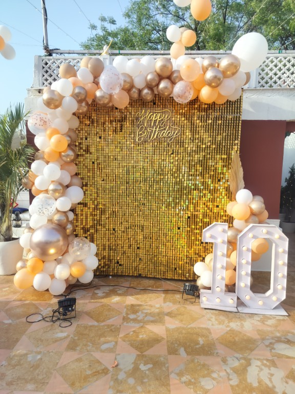 • The Minimalist Nook (Top Right): Ideal for smaller apartment celebrations in {{city}}. This focuses on a clean, bright setup with elegant balloon bouquets and floor-level styling.