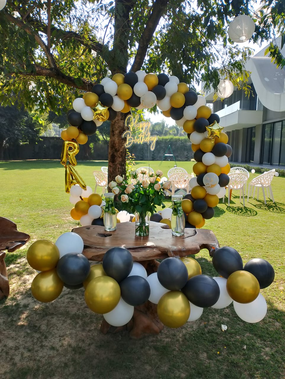 Premium Black & Gold Outdoor Birthday Backdrop | Luxury Garden Party Setup